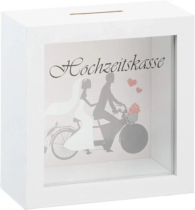 wunderschöne Spardose,Sparbüchse Hochzeit aus MDF GELDBANK Einheitsgröße Weiß Größe 14,5x14,5x6,3cm